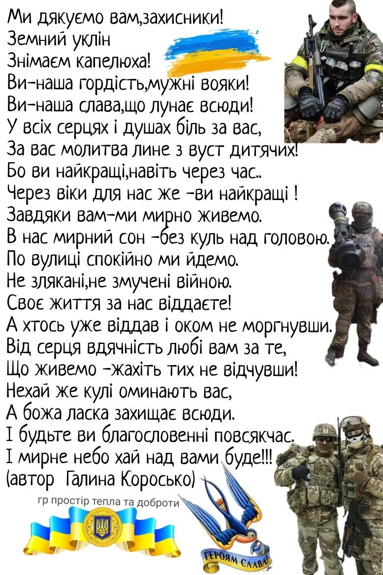 Низький уклін та глибока вдячність ВАМ захисники та захисниці України!