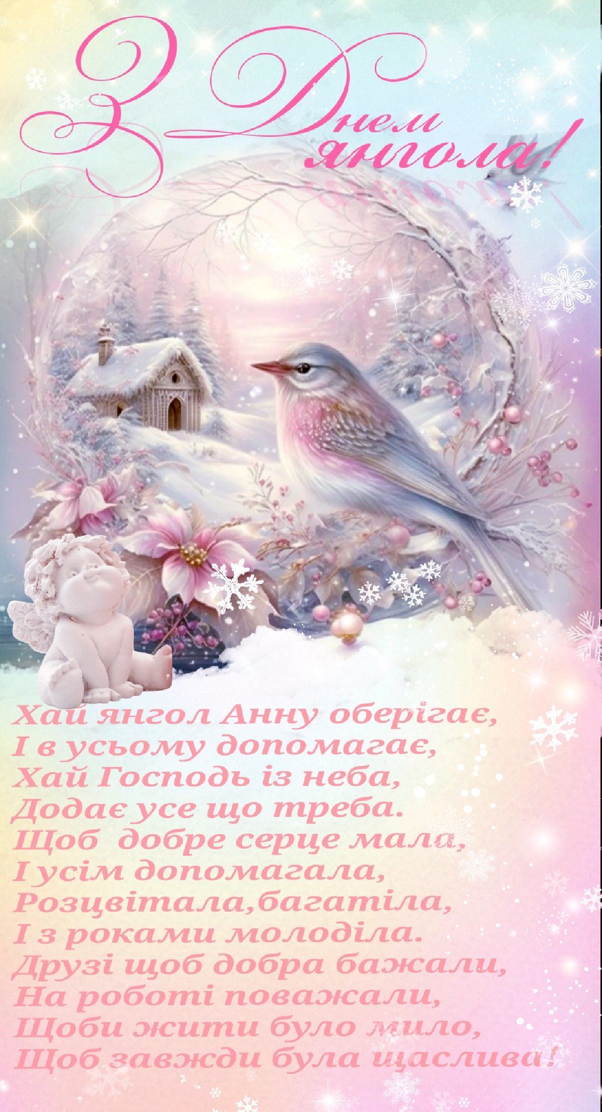 Анно, нехай твоє ім’я, яке означає "благодать", завжди буде джерелом світла й радості. Бажаю тобі міцного здоров’я, щирих друзів поруч і гармонії в душі. Хай кожен день приносить нові можливості та щасливі миті.