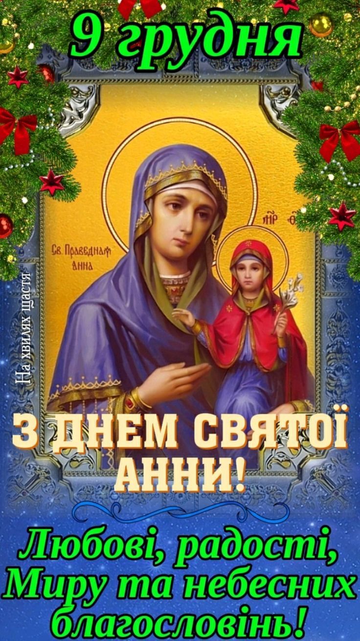 День святої Анни святкують 9 грудня – у день Зачаття Пресвятої Богородиці праведною Анною. А якщо у вас є знайомі чи родички з іменем Анна, то саме час привітати їх з Днем ангела.
