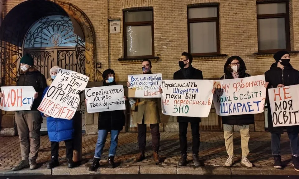 На початку року свого міністерського крісла міг позбутися очільник МОН Сергій Шкарлет. Студенти та депутати вимагали його відставки. Студенти навіть виходили на протест. Вони заявляли, що Міносвіти не може очолювати людина, у наукових працях якої виявили плагіат.