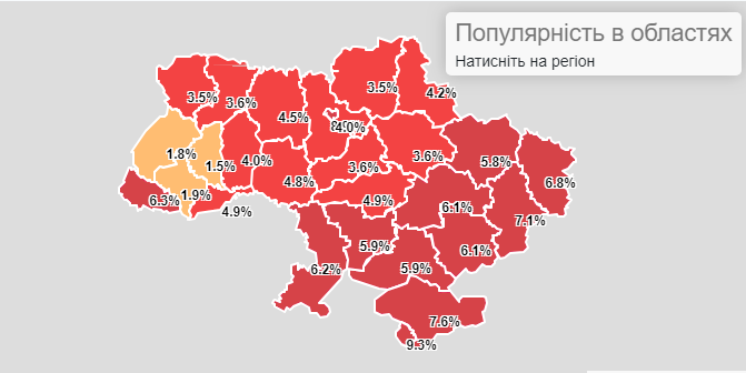 Популярність імені Олена в областях / дані порталу @namely.com.ua