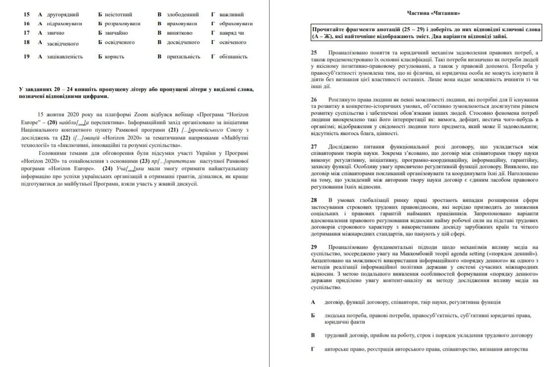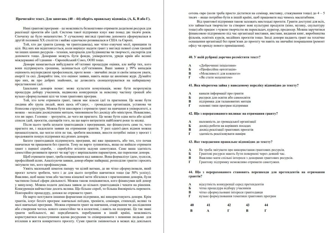 Зазначимо, що роботи "Культура мови" містить 24 тестові завдання, а "Читання" містить 20 тестових завдань.