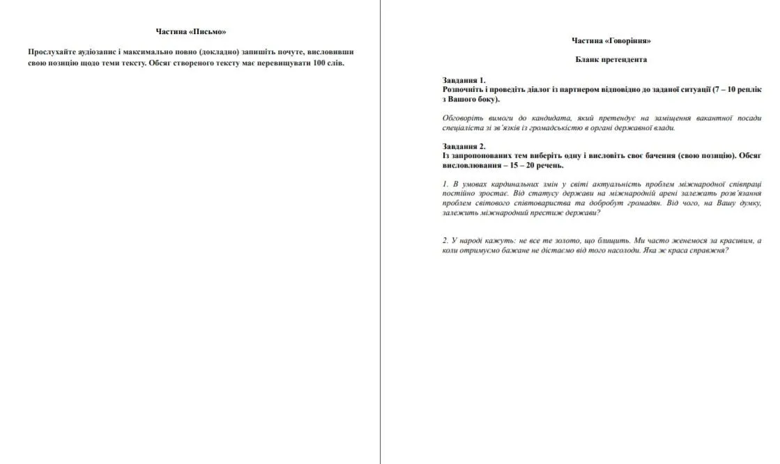 Натомість у частині “Письмо” потрібно буде виконувати одне завдання відкритого типу. Для цього необхідно прослухати аудіозапис, написати переказ почутого тексту й висловити своє ставлення до теми.