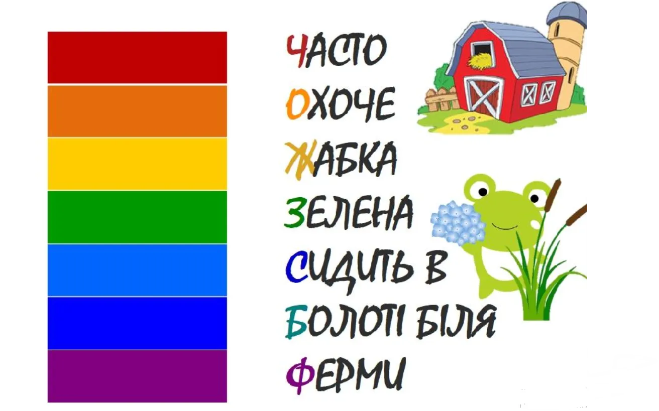 Також розповімо вам, як замінити російську приказку "Каждий охотнік желает знать, где сидит фазан". Зокрема, якщо вчите своїх дітей запам'ятовувати послідовність кольорів веселки.
