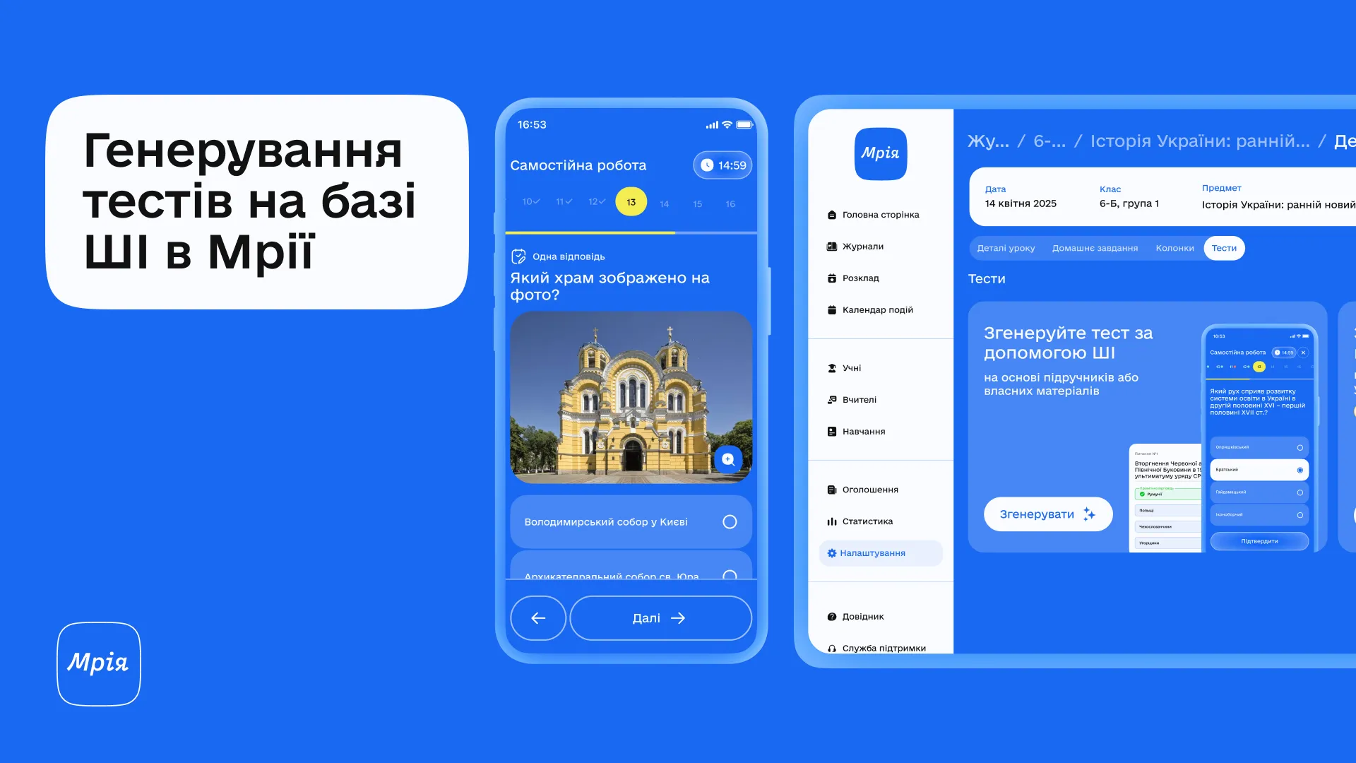 Мрія – це національна цифрова освітня екосистема, яка об'єднує школярів, вчителів, батьків та адміністрації в єдиному середовищі. Вона спрощує навчальний процес, автоматизує рутину, додає інструменти гейміфікації, штучного інтелекту та відкриває доступ до якісного контенту – від уроків до позашкільних активностей. Усе – безплатно, добровільно і доступно з будь-якого куточка країни.