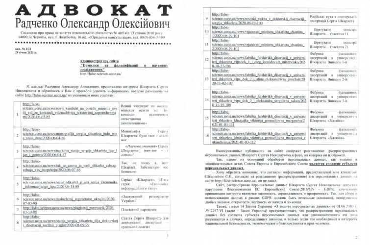 І це роблять не тільки співробітники Чернігівського університету, але й керівник патронатної служби МОН Сергій Захарін та міністр Сергій Шкарлет через свого адвоката. І це вже дуже серйозно, бо відображає ставлення до академічної доброчесності не тільки окремих осіб, а й керівництва МОН,