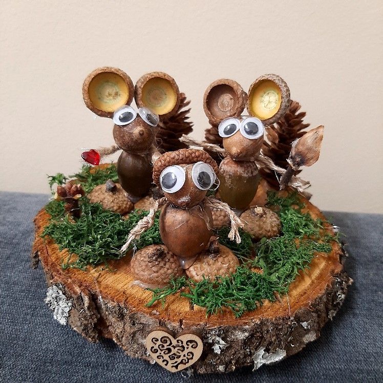 Подібний простір для творчості дають і жолуді та шишки. Які можуть бути окремим виробом, частиною чи декором.