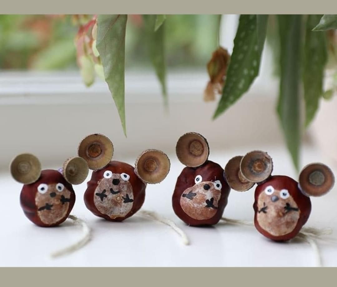 Які об'ємні поробки з шишок та каштанів можна зробити?