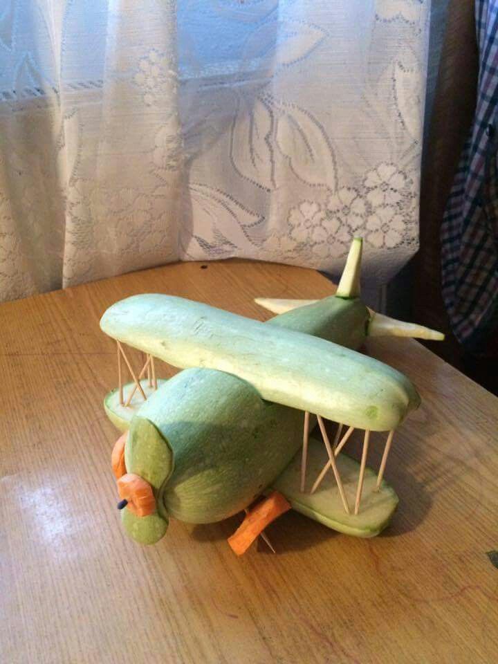 Овочі та фрукти найцікавіший та найпридатніший матеріал. Тут можна підібрати колір та розмір та дати політ своїй фантазії та вирізьбити якісь частини. Гарні ідеї пропонує ресурс "Пустунчик". Гарбузи стають будинками, каретами, кошиками. З кабачків та баклажанів можна вирізати – акул, дельфінів, китів, тюленів та інших морських жителів. Або ж – кораблем з парусами з капустяного листя.
