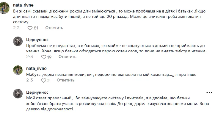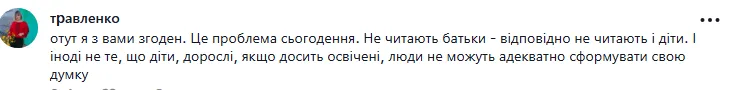 Звісно є і ті, хто підтримує освітянку. Та зауважують, що батьки багато дозволяють сидіти у гаджетах замість спілкуватися, а у деяких навіть книг вдома не має.