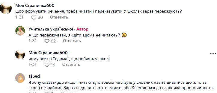 "Нехай мене захейтять, але завжди кажуть своїм дітям, що вчителя потрібно слухати. Щодо словникового запасу потрібно спілкуватися з дітьми на різні теми, навіть елементарне запитати як пройшов день".