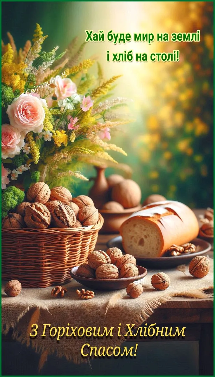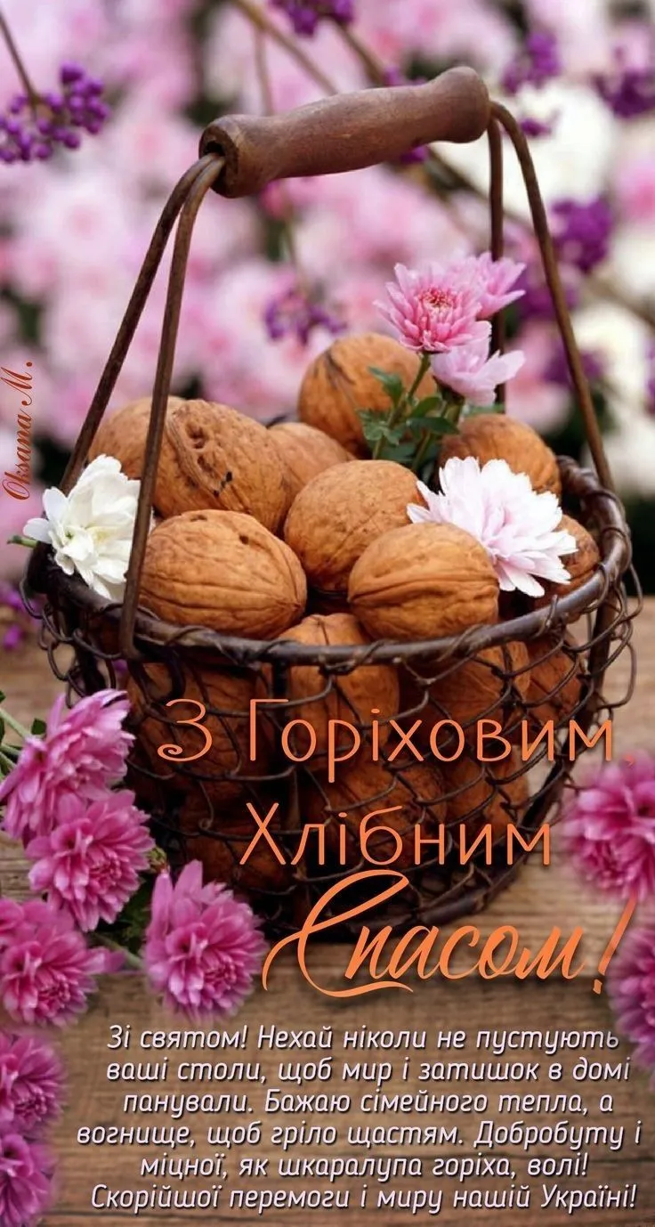 З Горіхово-Хлібним Спасом! Нехай здоров'я твоє буде міцно-горіховим, а життя хлібно-ситним під мирним небом у вільній Україні.