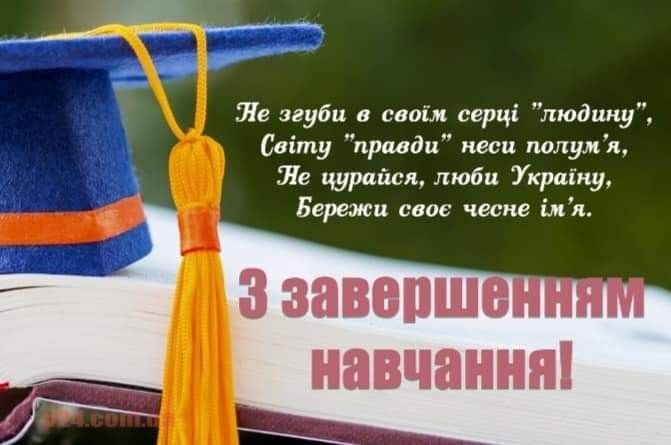- Привітання містять побажання щасливого літнього відпочинку, успіхів у виборі життєвого шляху, досягнення омріяних цілей, і закликають зберігати добрі спогади про шкільні роки.