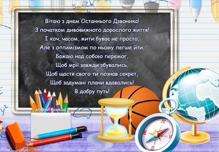 Ось і добіг завершення навчальний рік. І у більшості шкіл України пролунає останній дзвінок. У цей день слова вітання побажання та підтримки хочуть отримати і вчителі, і школярі.