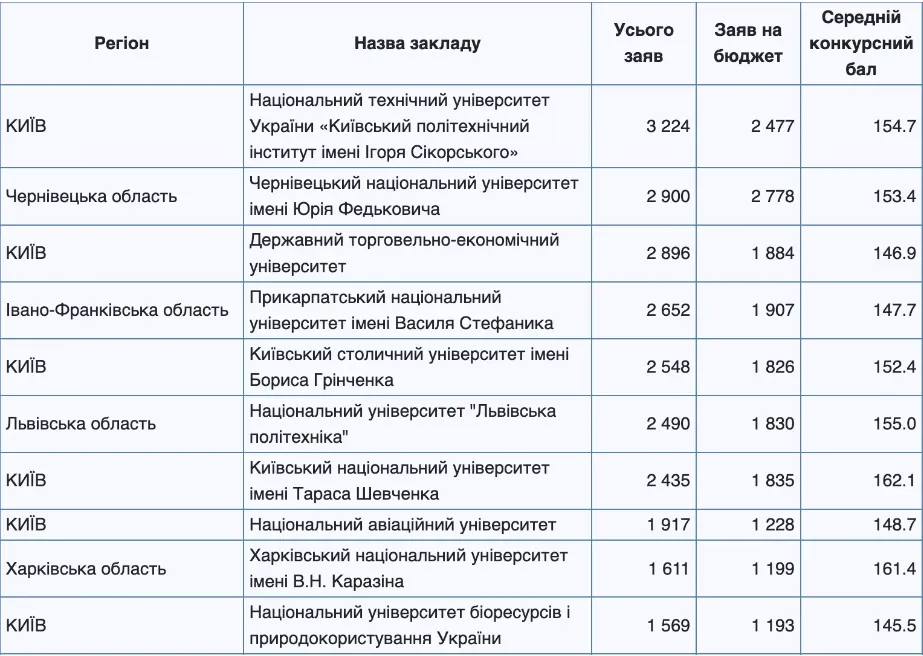 У які виші України вступники подали найбільше заяв у перші дні вступної кампанії 2024 / скриншот