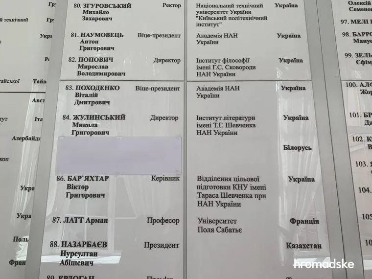 Цікаво, але щоб не переробляти стенд з переліком всіх почесних докторів КНУ, ім’я Лукашенка просто заклеїли. Водночас там залишився напис "Білорусь".