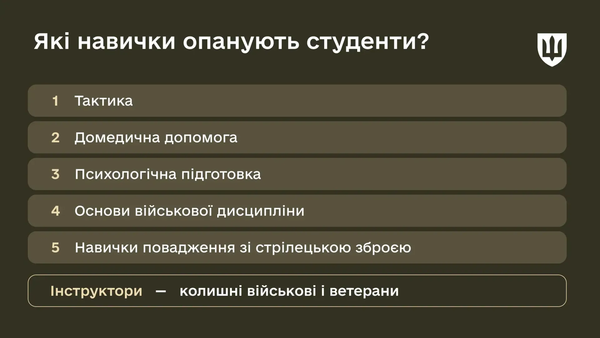 Перед началом практической части все участники пройдут медицинский осмотр в соответствии с Положением о военно-врачебной экспертизе в ВСУ. Лица, признанные непригодными к военной службе, будут освобождены от практического курса.