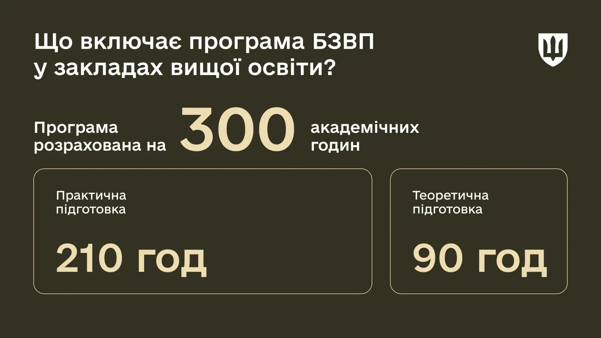 БЗВП – это программа военной подготовки для студентов, что интегрируется в образовательный процесс ЗВО. Ее цель – формирование базовых военных компетентностей у молодежи, повышение уровня национальной безопасности и готовности граждан к защите государства в условиях современных вызовов.