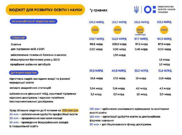 В то же время увеличили расходы на Научный фонд исследований, гранты и научно-технические исследования. На это предусмотрели 2 миллиарда гривен на 2023 год по сравнению с 1,5 миллиардами в 2022 году.