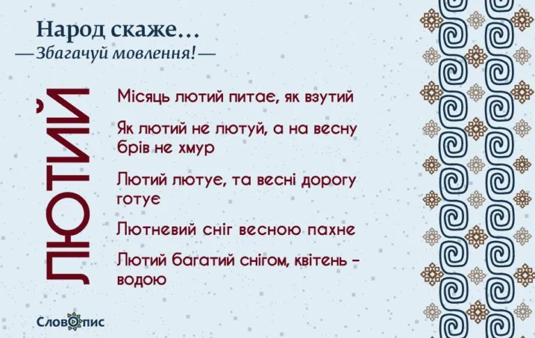 Что интересно, лютий – единственное название прилагательной формы среди всех современных украинских наименований месяцев.