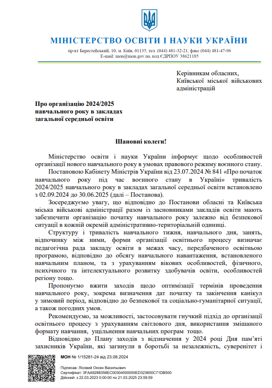 - МОН Украины советует школам рассмотреть изменения в структуре и продолжительности учебного года из-за возможных блэкаутов, включая перенос уроков на июнь или увеличение зимних каникул.