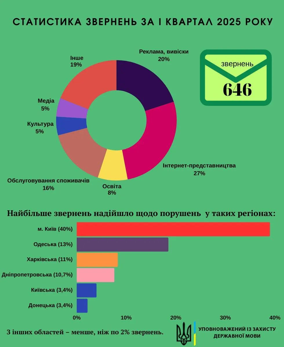 Уполномоченный по защите государственного языка Тарас Креминь отметил, что проблемы с соблюдением языкового законодательства существуют по всей Украине. Однако больше всего их есть в столице и городах-миллионниках – Одессе, Харькове и Днепре.