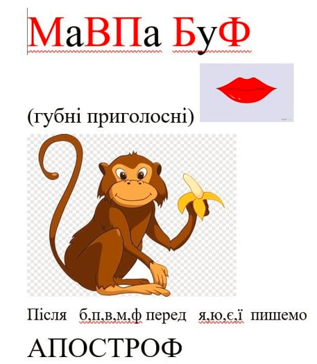 В чем секрет МаВПи БуФа правило гласит, что после губных согласных М, В, П, Б, Ф перед гласными Я, Ю, Е, Ї пишется апостроф.