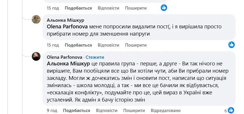 В комментариях мать первоклассницы уточнила, что удалила из поста номер учебного заведения, о котором писала, потому что ее вообще просили удалить сам пост.