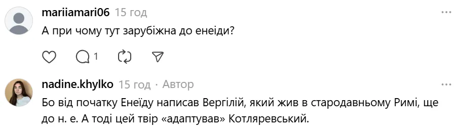 Ну и конечно, часть комментаторов и не знали о "Энеиде" Виргилия, и написали, что такой вопрос для детей некорректный, следовало дать больше уточнений детям.