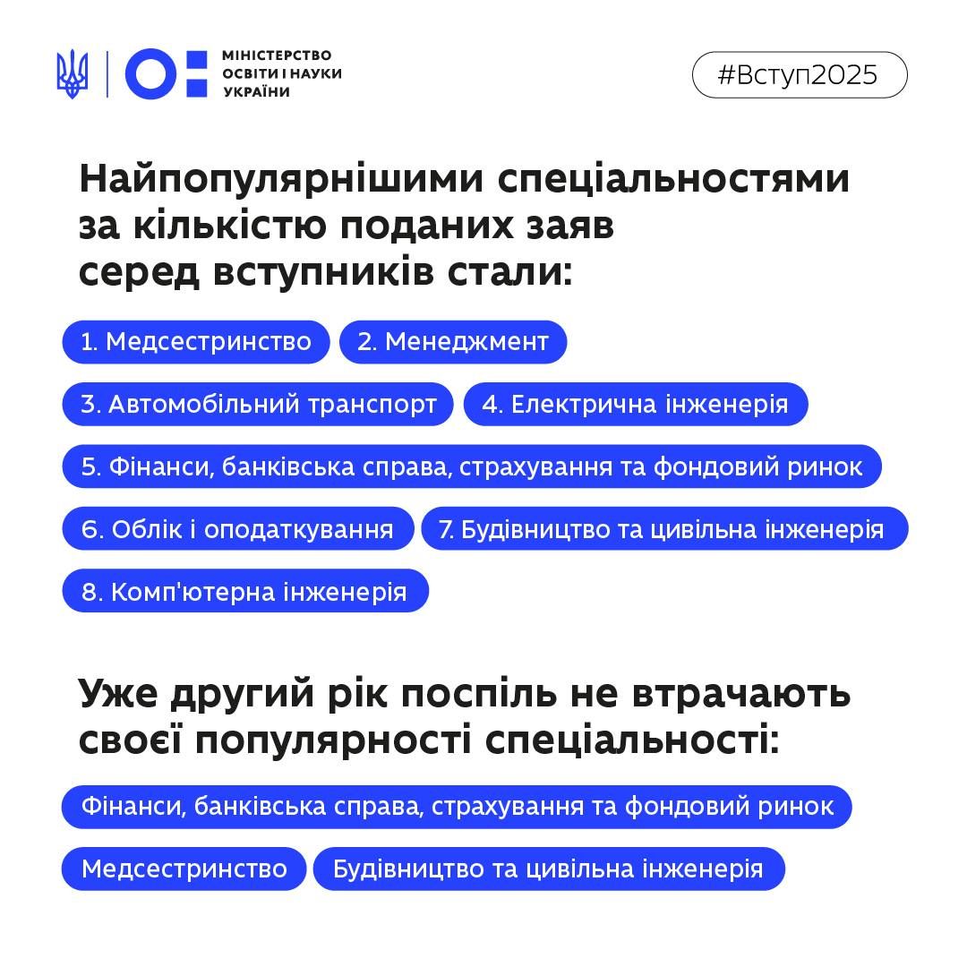 Самые популярные специальности среди поступающих в колледжи 2025 / МОН