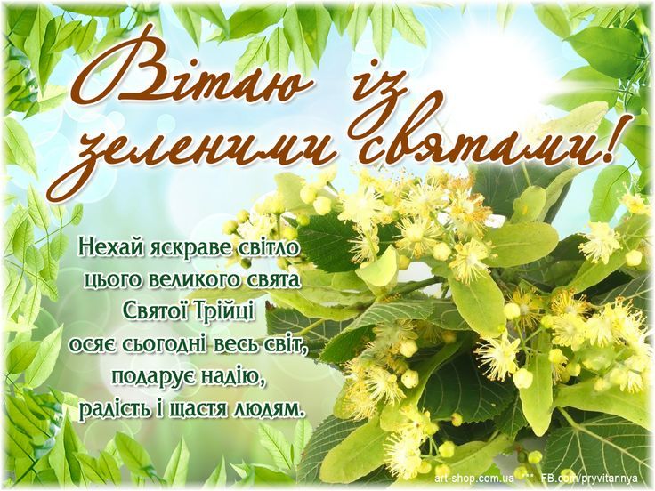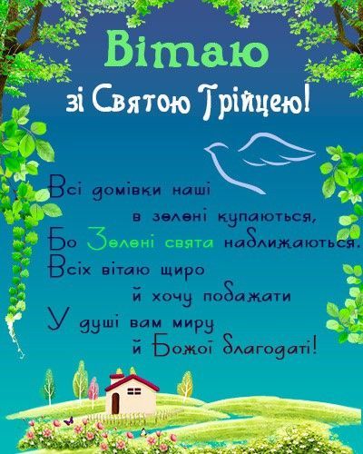 - Поздравляю с Зелеными праздниками! Пусть в вашей семье будет согласие, мир и достаток!"