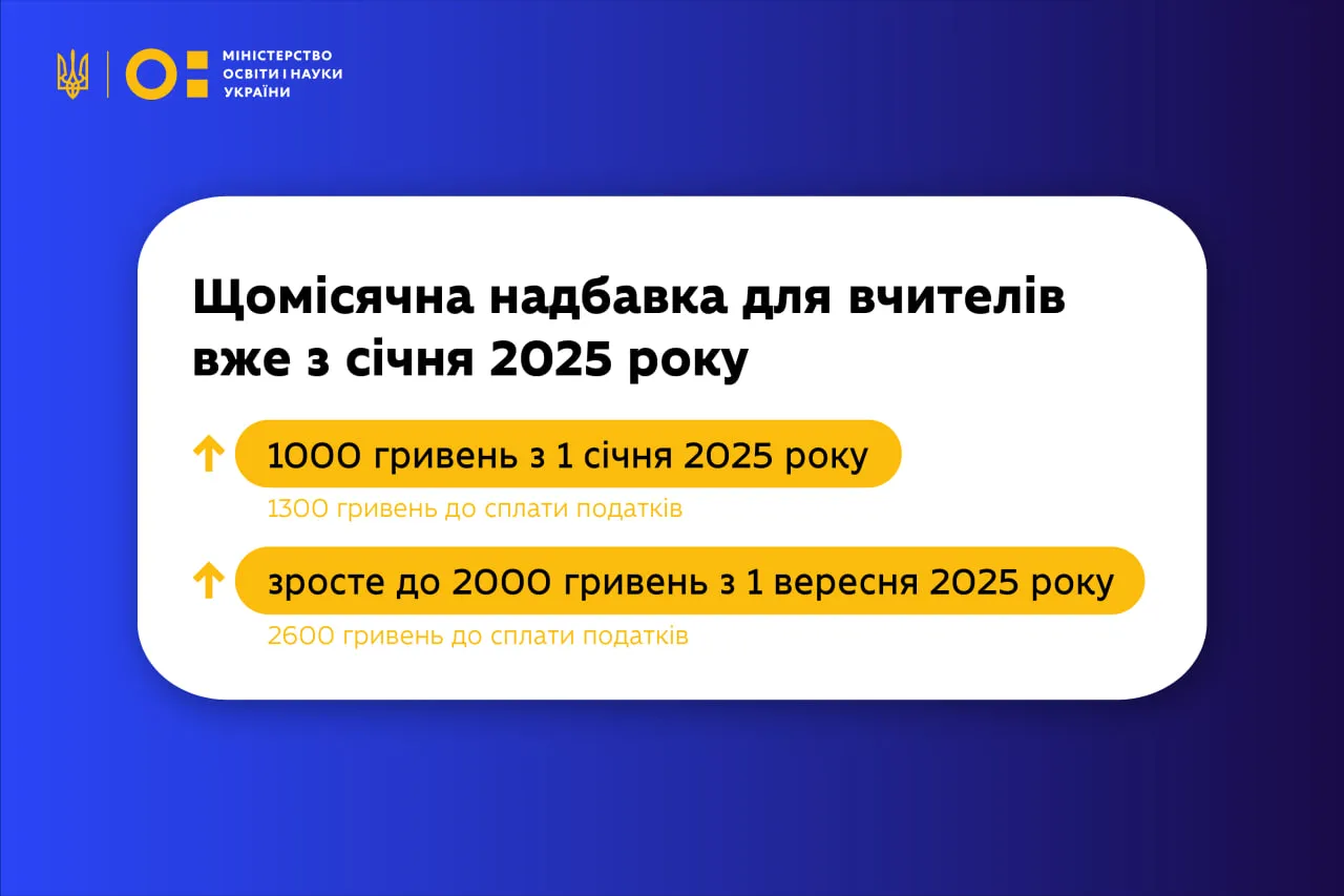 С 1 сентября 2025 года эту выплату увеличим до 2000 грн "на руки" каждому учителю,