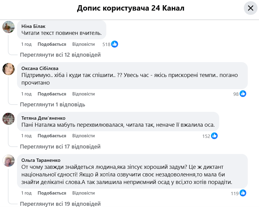 Украинцы в соцсети не скрывали разочарования прочтением текста. В частности, отмечали, что не успевали его записывать. Кто-то сетовал и на сам текст.