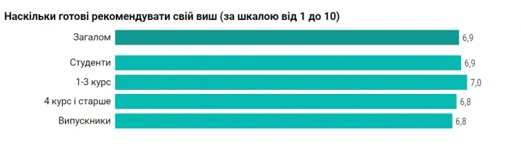 77% студентов и недавних выпускников рекомендовали бы нынешним абитуриентам получать образование в Украине, а 19% – за границей.