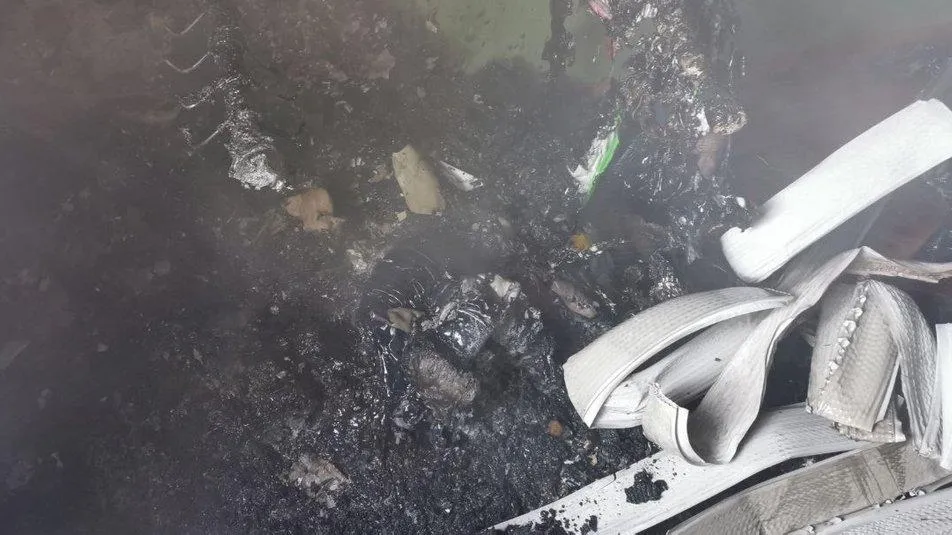 Но известно, что загорелись детские вещи. Площадь возгорания примерно 1 метра квадратного. Около 20 курток учащихся повреждены огнем.