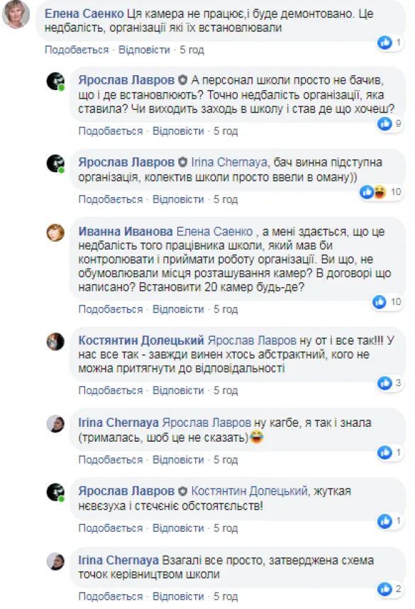 Между тем, родительский совет города Черкасс опубликовал запрос на устройства видеонаблюдения. Отмечено, что всего в школе установили 21 камеру. Однако, возможности онлайн-доступа к этим видео нет. В документах указано, что вся информация, которая есть на камерах, хранится у администрации школы.