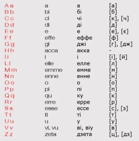 В итальянской азбуке всего 21 основная буква и 5 дополнительных, которые используются для написания иноязычных слов. Звуки в большинстве случаев соответствуют предложенным символам, что упрощает изучение фонетики и произношения.