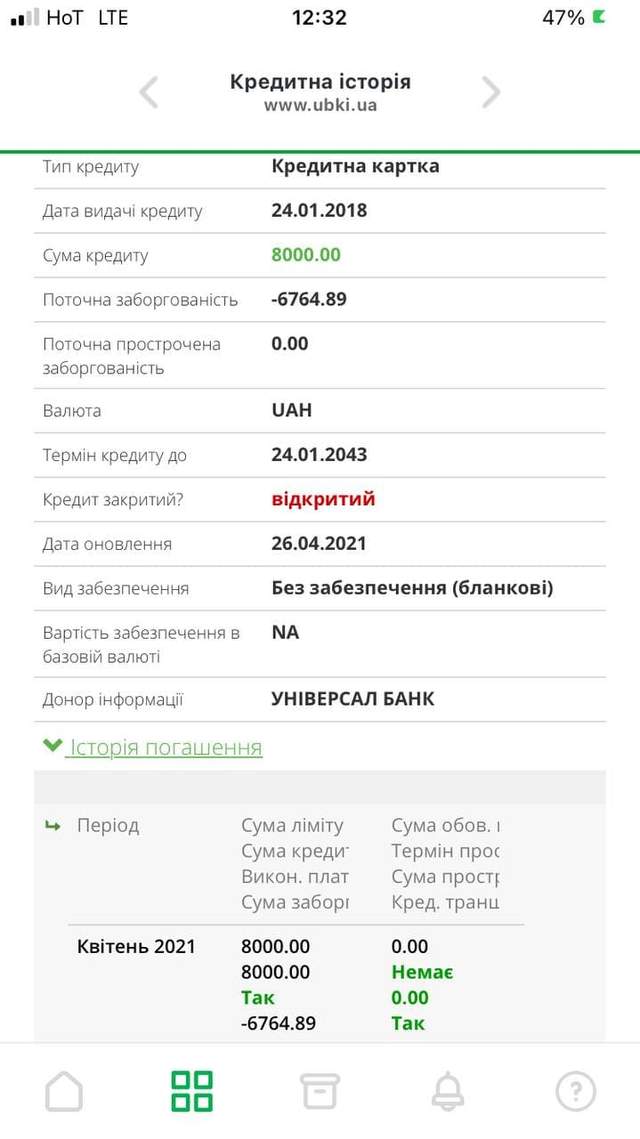 Украинское бюро кредитных историй разработало специальное приложение, в котором можно раз в год бесплатно просматривать кредитный рейтинг и кредитную историю физическим лицам.