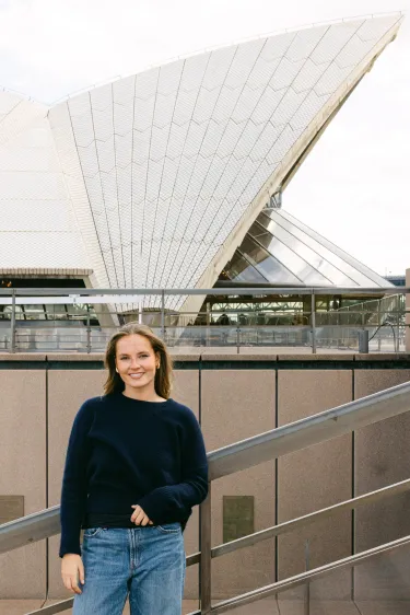 Девушка уже переехала, успела прогулялась по городу и сделала несколько фото, в том числе и на фоне сиднейской оперы. Она выглядит как обычная студентка – в джинсах, кроссовках и синем свитере.