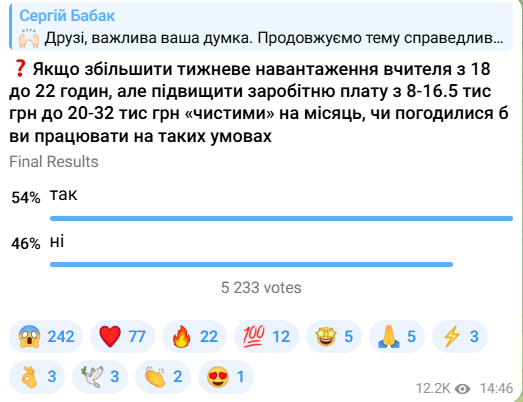 Опрос в телеграмме Сергея Бабака / скриншот сообщения