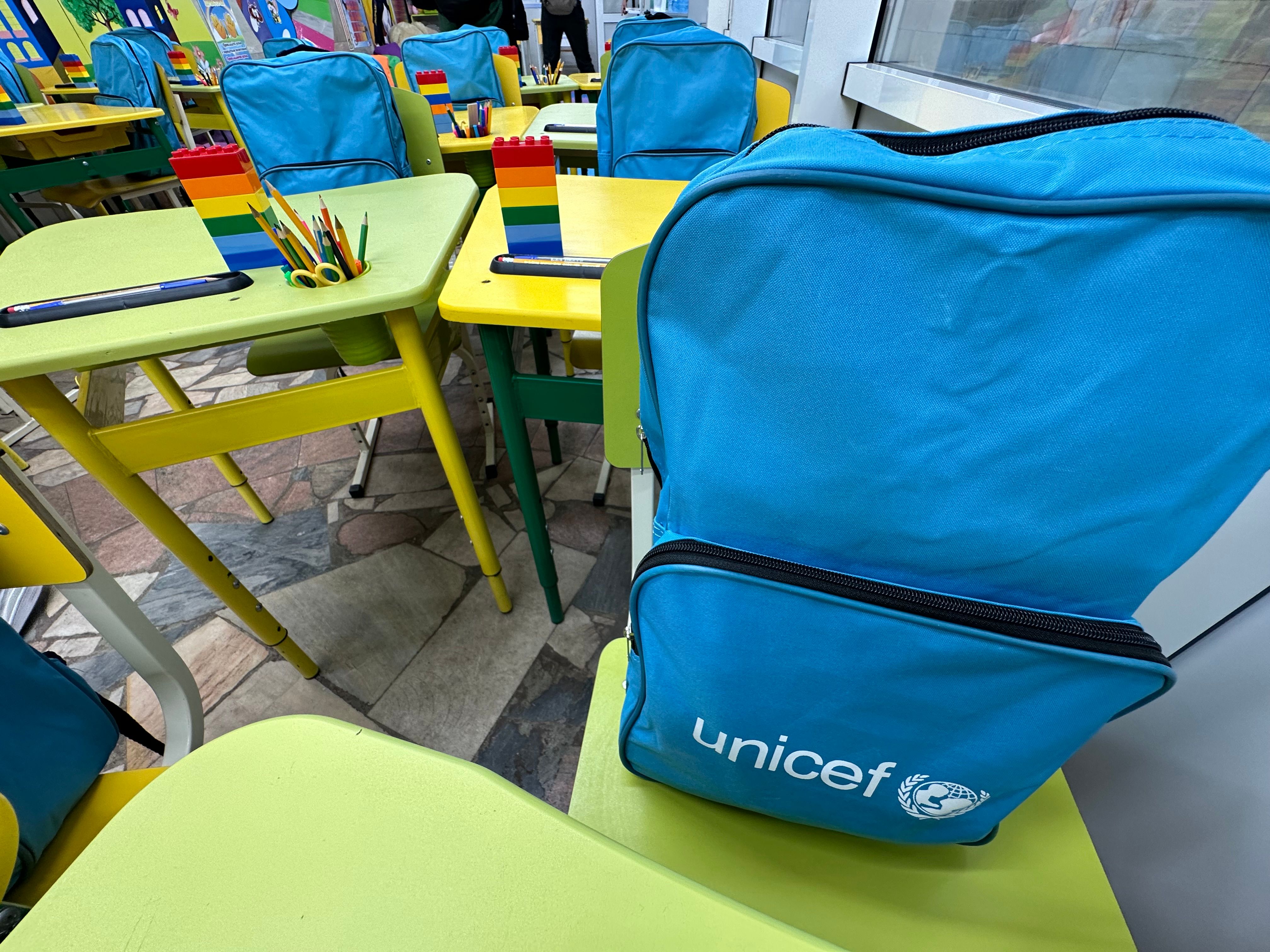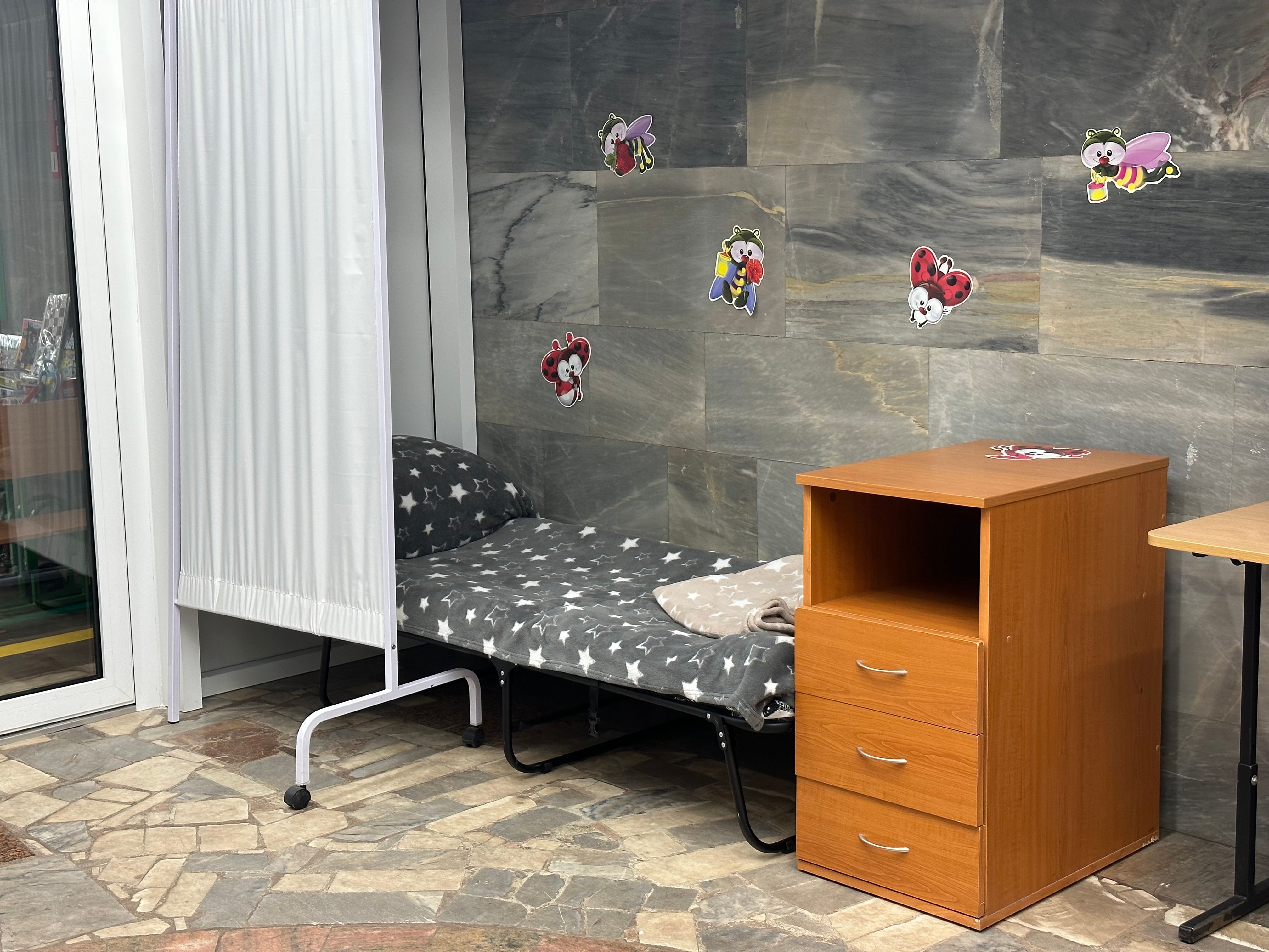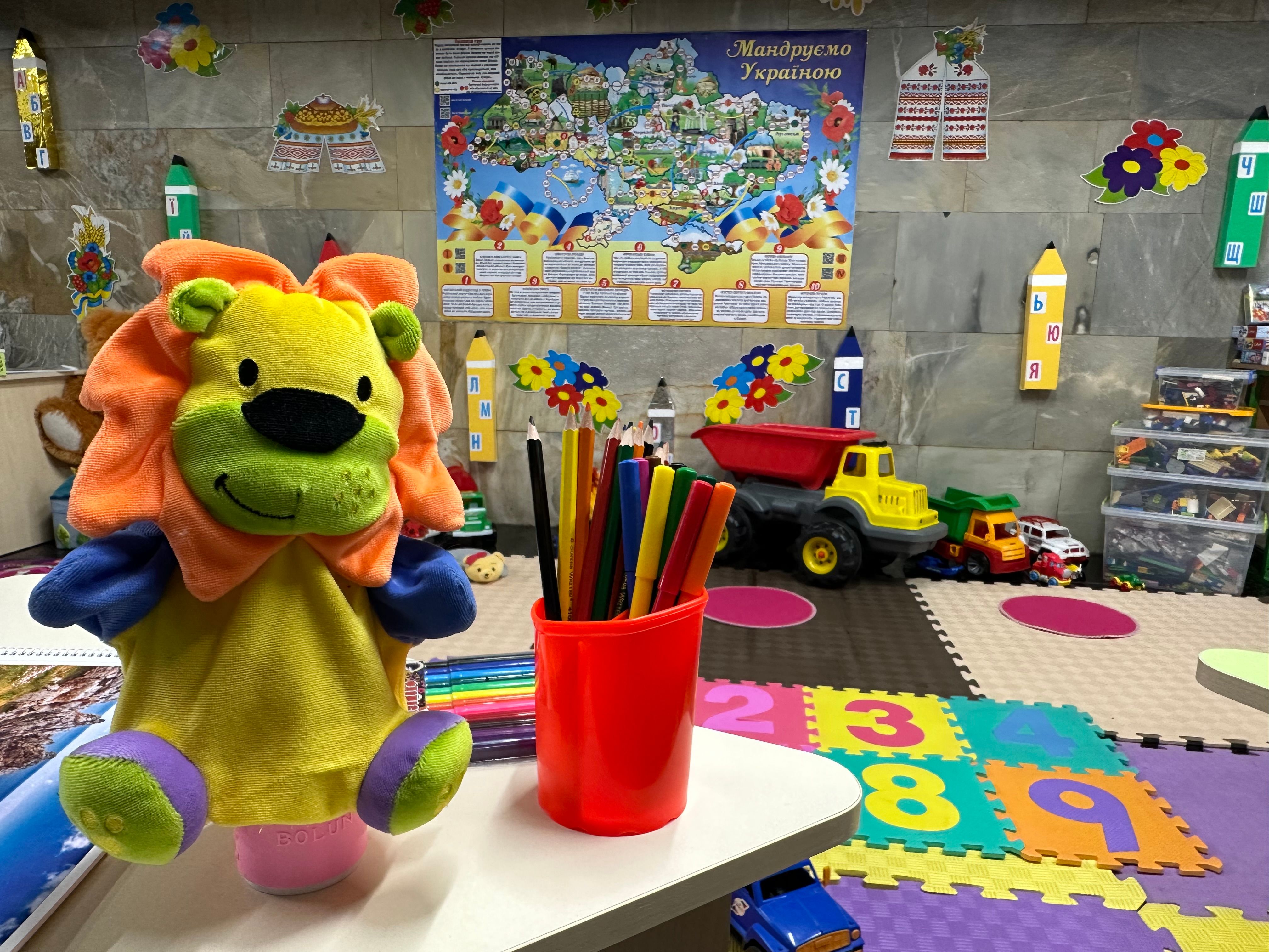 Простір у них яскравий – учителі перевезли шкільне приладдя з кабінетів у школі. Там є дошки, парти та іграшки.