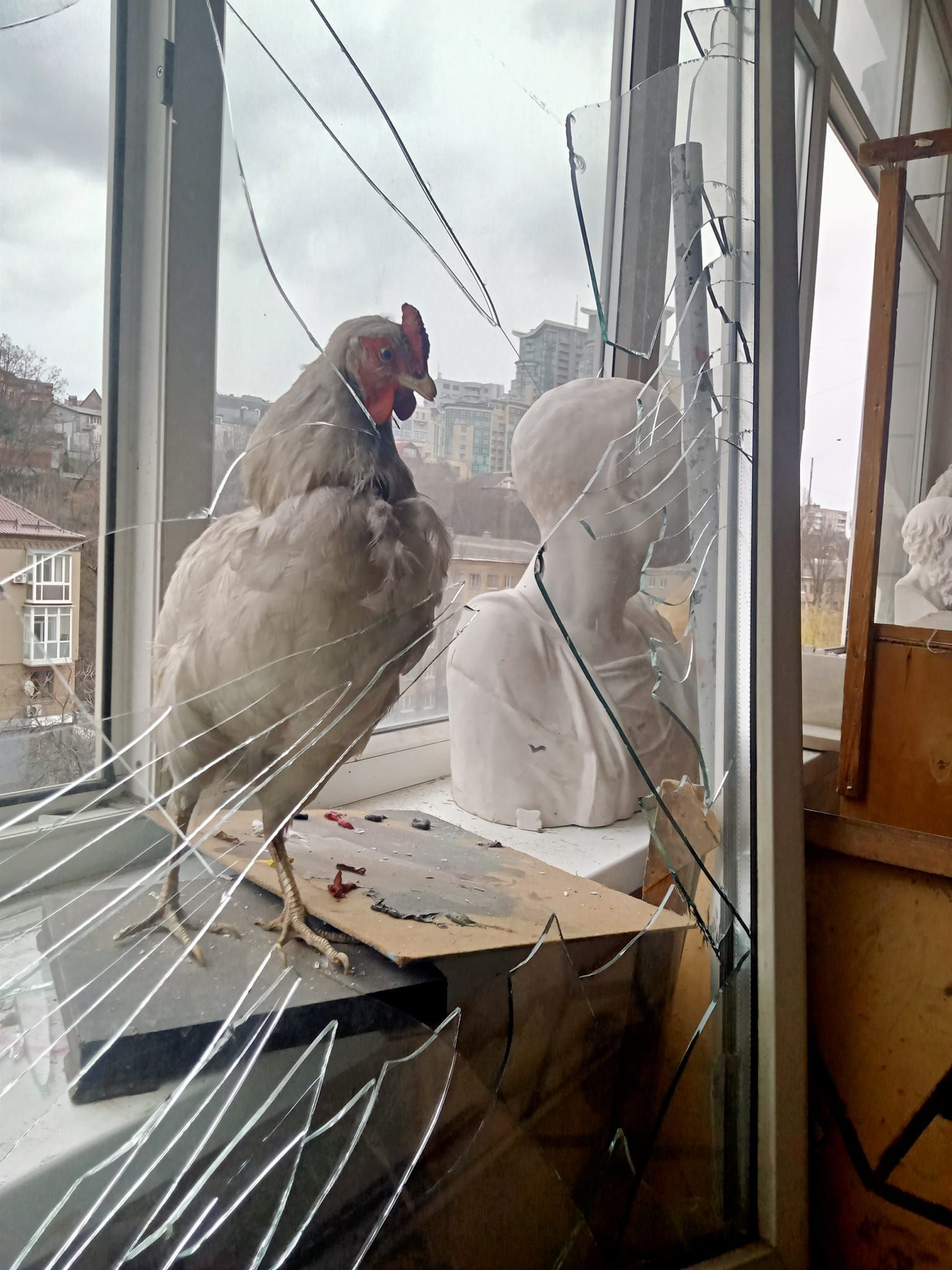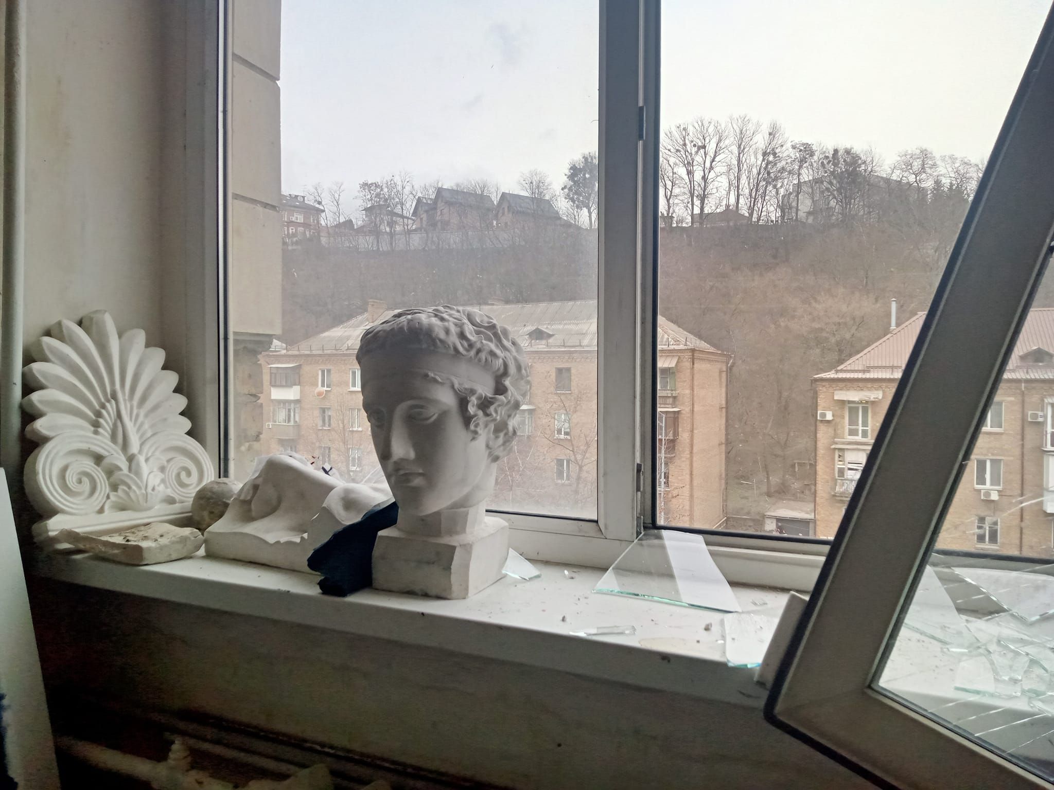 Вибух страшенний. Полетіло скло, гіпсові скульптури нам на голови. Ми кинулись на підлогу, закрились руками,