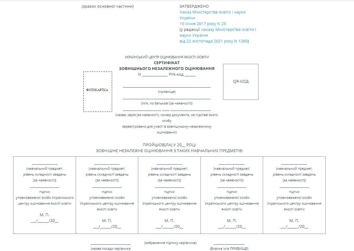 Окрім того, наказом Міністерства освіти затверджено нову форму інформаційної картки до сертифіката, у якій зазначаються результати зовнішнього незалежного оцінювання за шкалою 100-200 балів з усіх предметів.