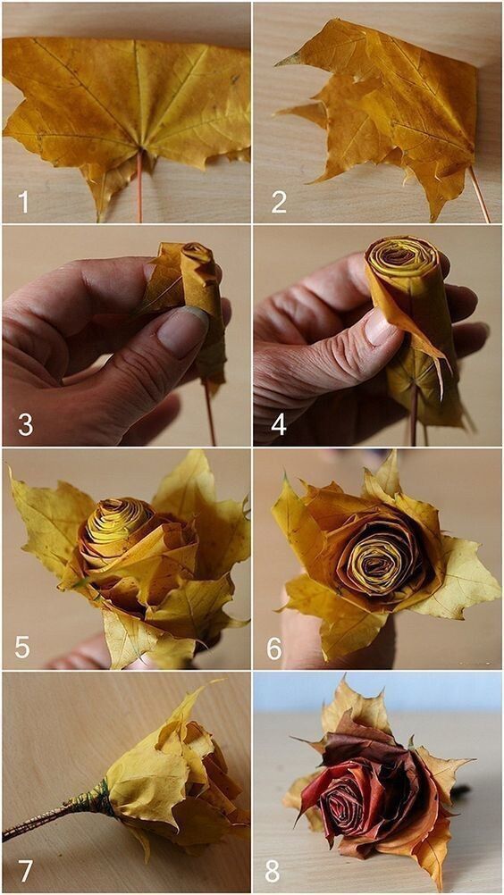 Як не дивно, але досить довгий час зберігаються троянди з листя. За основу беруть свіже кленове листя чи з дерева гінкго, які складають разом, формуючи бутон і пелюстки. Такі "квіти" висихають, стають гербарієм і тішать довгий час у вазі.
