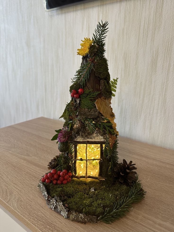 Ще однією цікавою темою є створення нічника. Це може бути куля зі гілок, шишок чи жолудів. Або ж основою стане звичайна скляна банка, яку ззовні можна декорувати природними матеріалами. Створити її можна ліхтарик, будинок з віконцями, нірку, печеру. А в середині, для освітлення, використати гірлянду чи декоративну свічку.