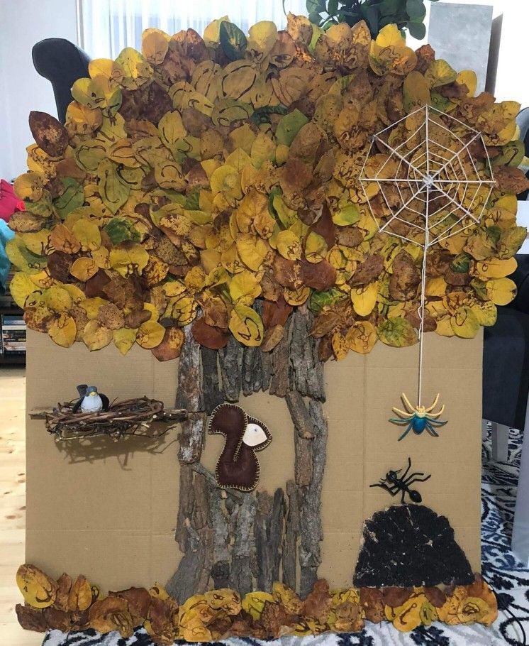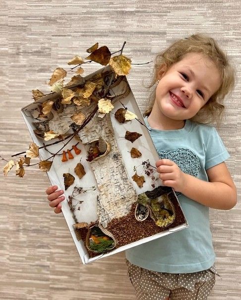 Цікавою темою є створення об'ємні картини. Основою може стати коробка від взуття. А сюжет залежить від вашої фантазії – вікно з пейзажем, дерево з гніздечком, дупло білки, нірки інших лісових жителів – їжака, лисички, ховраха.