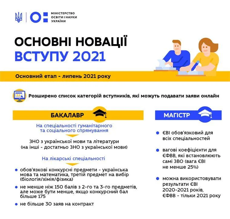 Основні новації вступу 2021 / Фото Міністерство освіти та науки