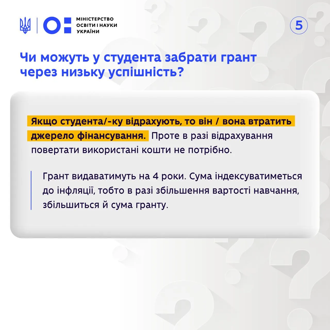 Грант видаватимуть на чотири роки. Сума індексуватиметься до інфляції, тобто в разі збільшення вартості навчання збільшиться й сума гранту.