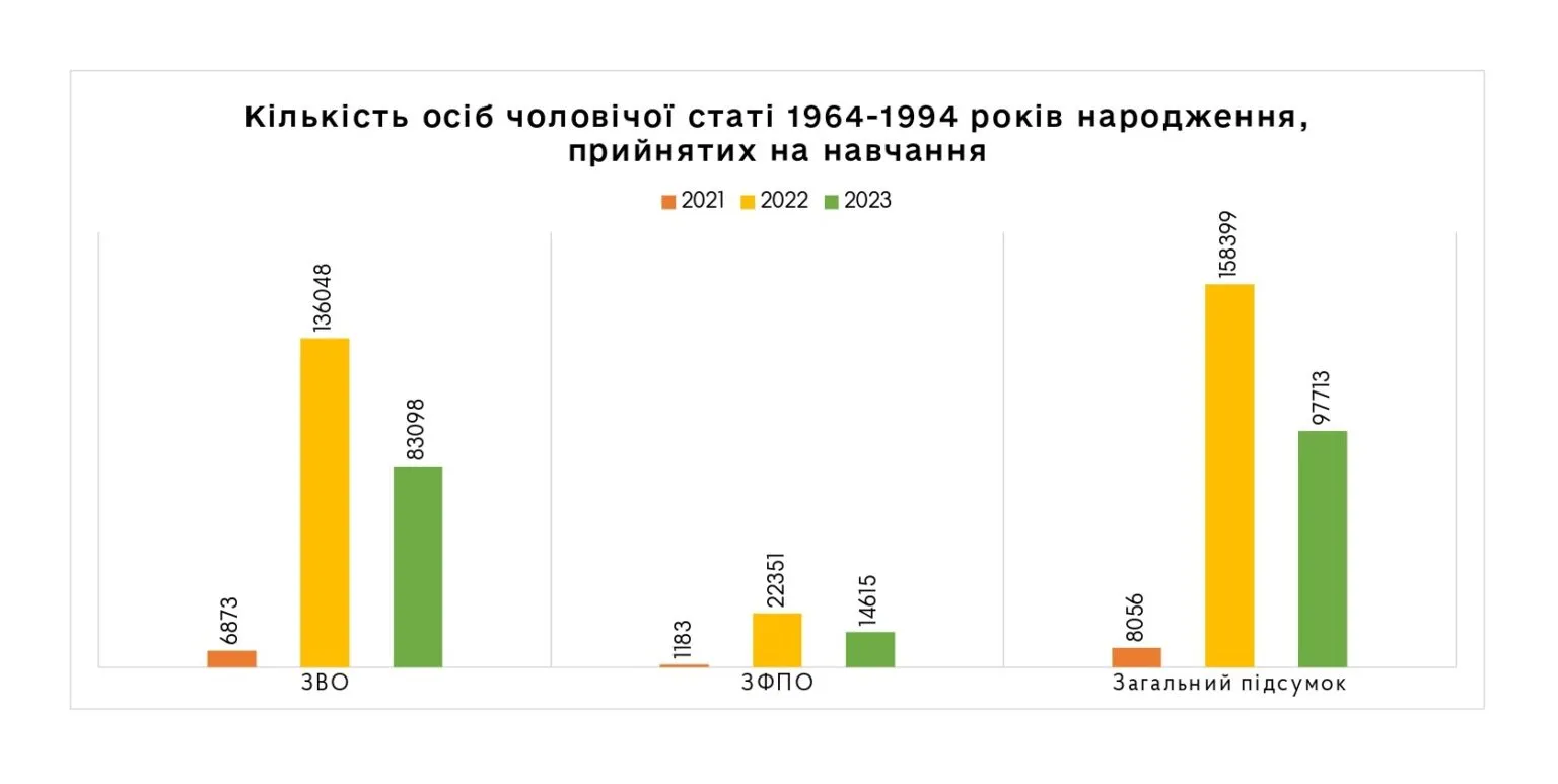 Скільки чоловіків 1964 – 1994 років народження вступали до вишів / інфографіка ДСЯОУ