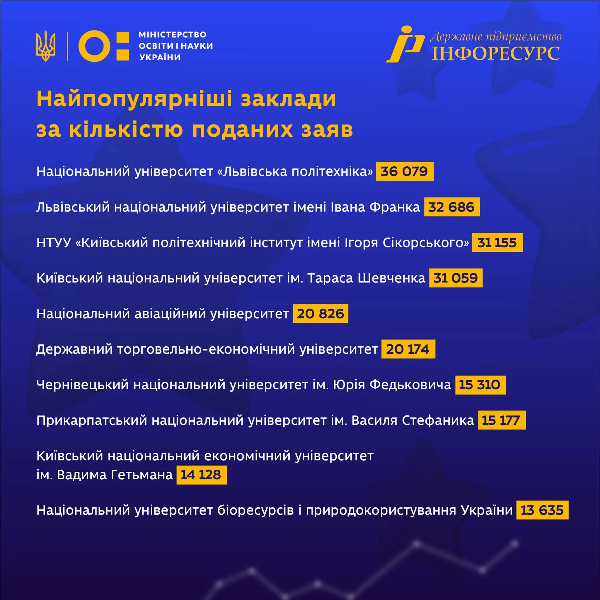 - Київський національний економічний університет імені Вадима Гетьмана – 14 128 заяв;